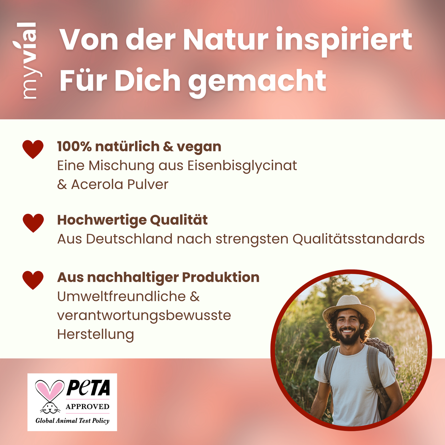 Unser Eisenpulver basiert auf einer hochwertigen, natürlichen Eisenquelle, die optimal für die tägliche Versorgung geeignet ist. Es ist frei von unnötigen Zusatzstoffen, vegan und hervorragend in Speisen und Getränke integrierbar. Gemeinsam mit Vitamin C aus natürlicher Quelle (z. B. Camu Camu) unterstützt es eine verbesserte Aufnahme und Verwertung.
